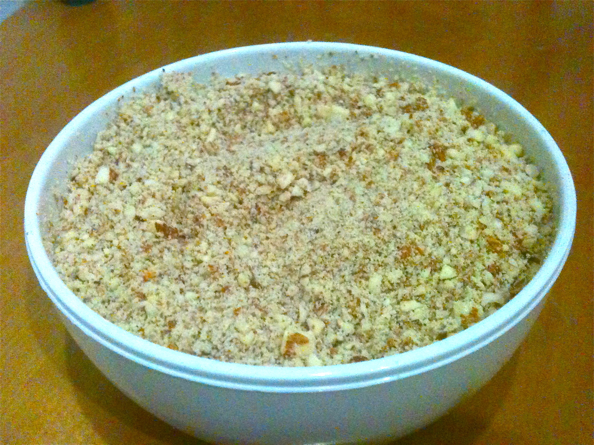 In a food processor, blitz almonds to about the consistency of wet sand. A few small chunks are okay.