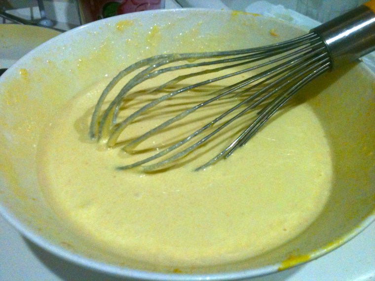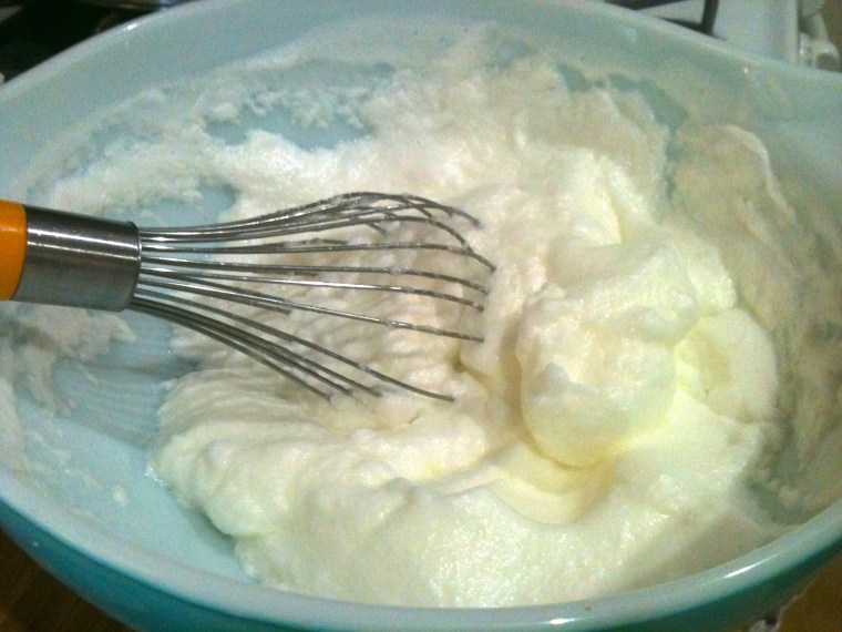 Take a spoonful of the whites and stir it into the yolk mixture to even out the consistencies a bit.