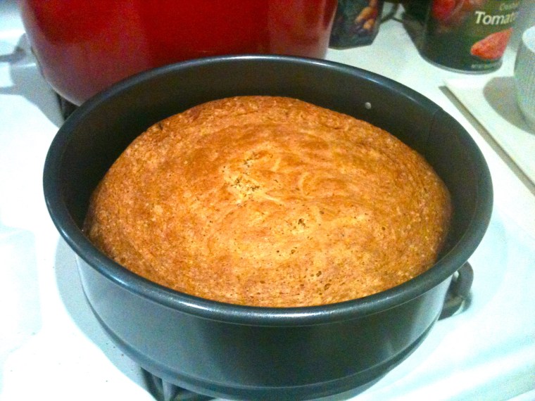 Pour into greased spring-form pan and bake for 40 minutes, until cake has set and is golden brown. Cool for 15 minutes before icing.