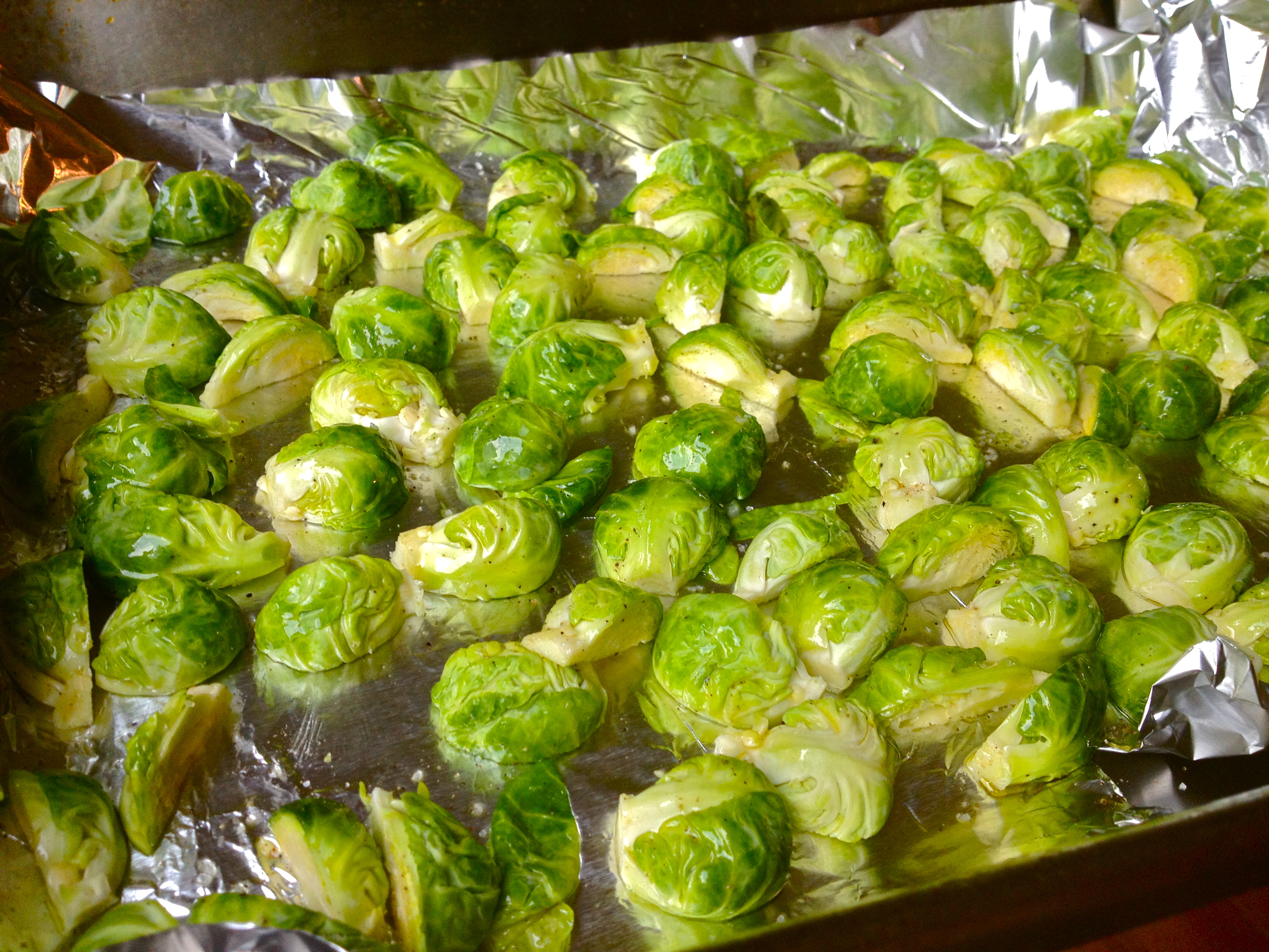 a few handfuls of Brussels sprouts, the smaller ones halved and the larger ones quartered