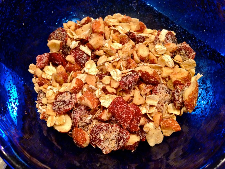 Combine oats, sugar, cranberries, almonds, and cinnamon in a bowl.