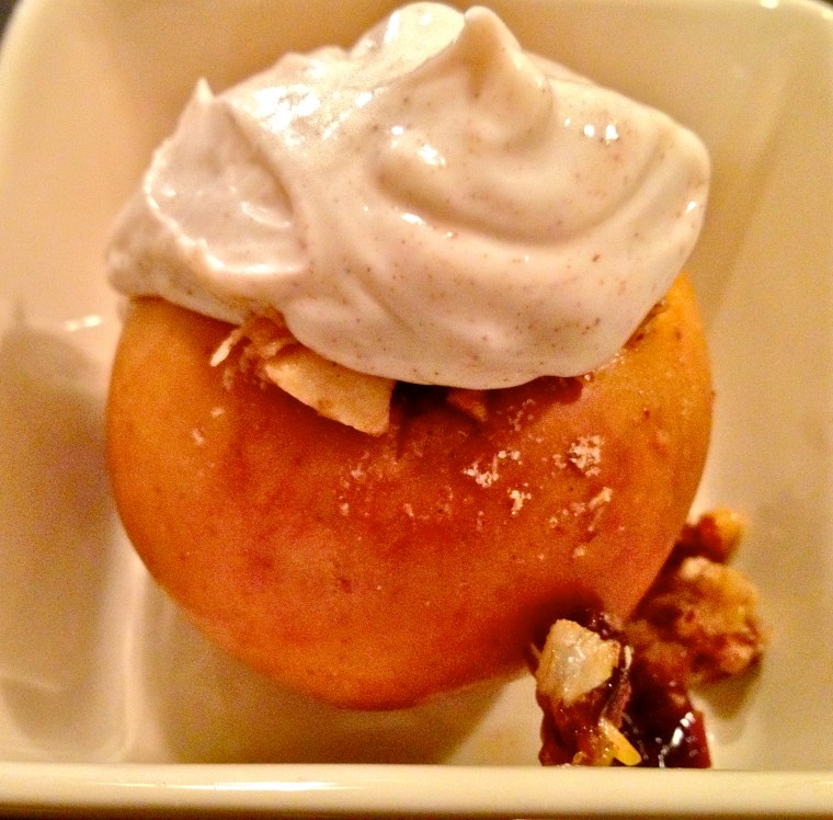 Baked apples were one of the first desserts I ever baked up all on my own; I’ve probably been making these, with variations here and there, for ten years. Read: they’re incredibly easy. I made them ahead of time and left them to sit for a few hours before popping them in the oven. It’s also a super versatile recipe, because you can mix up a filling out of whatever you have on hand. This version has a filling made of oats, cranberries, and almonds, and a creamy cinnamon vanilla yogurt topping, but really any kind of nut and any kind of dried fruit will do. It’s a great way to use up any leftovers from your apple-picking harvest!
