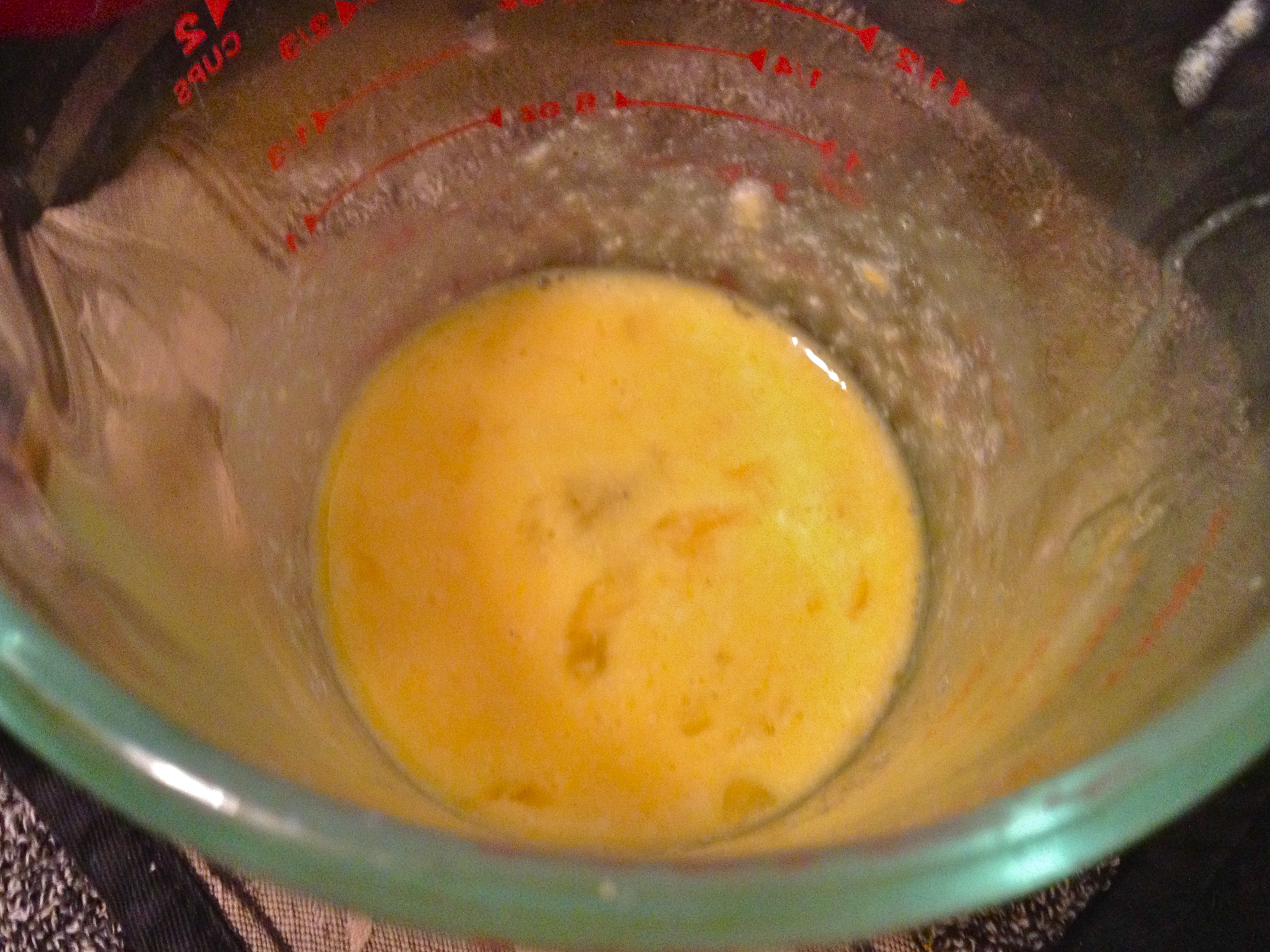 In a separate bowl, add a spoonful of the hot cheese sauce to the beaten egg to temper, and use a fork to stir.