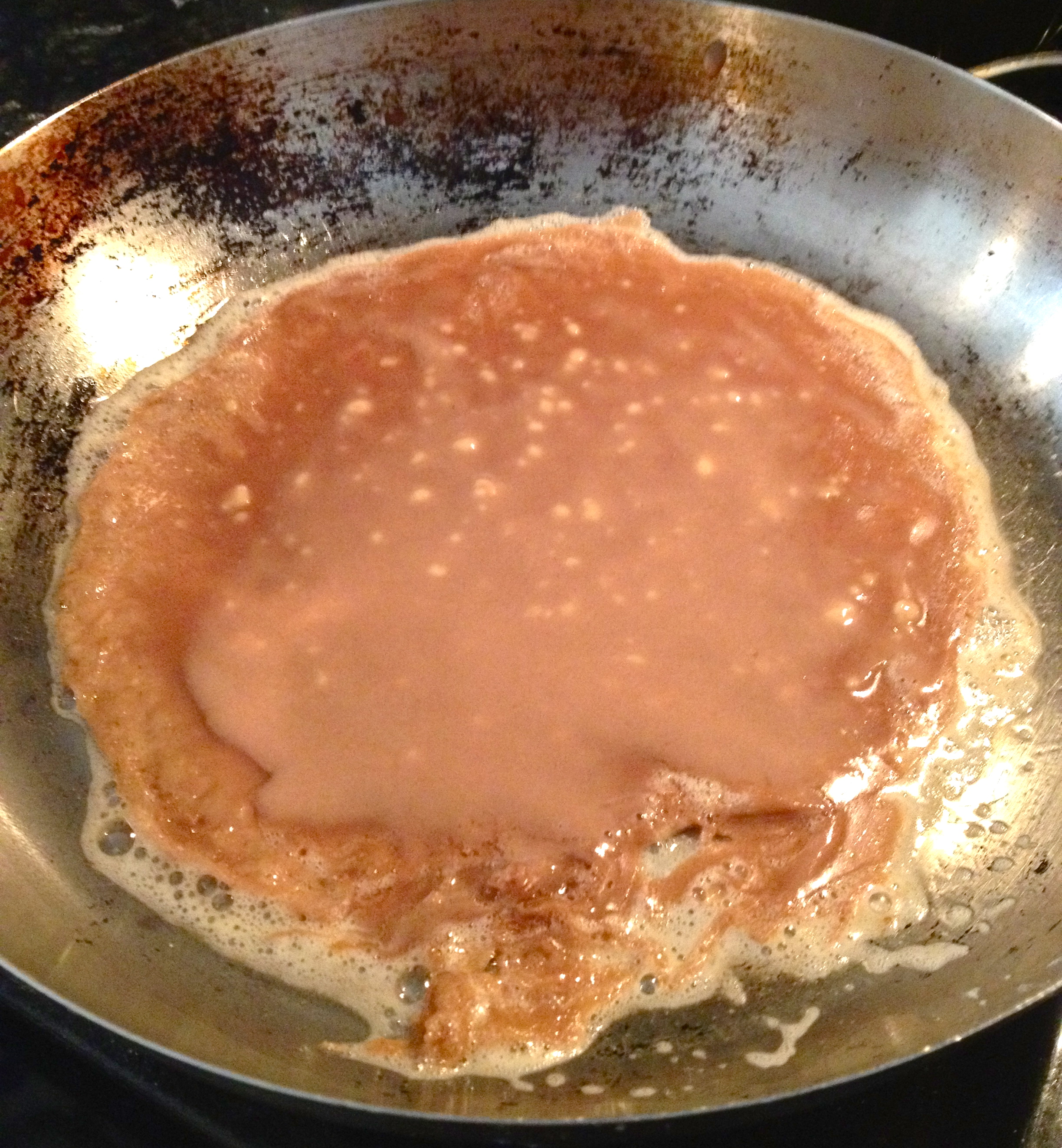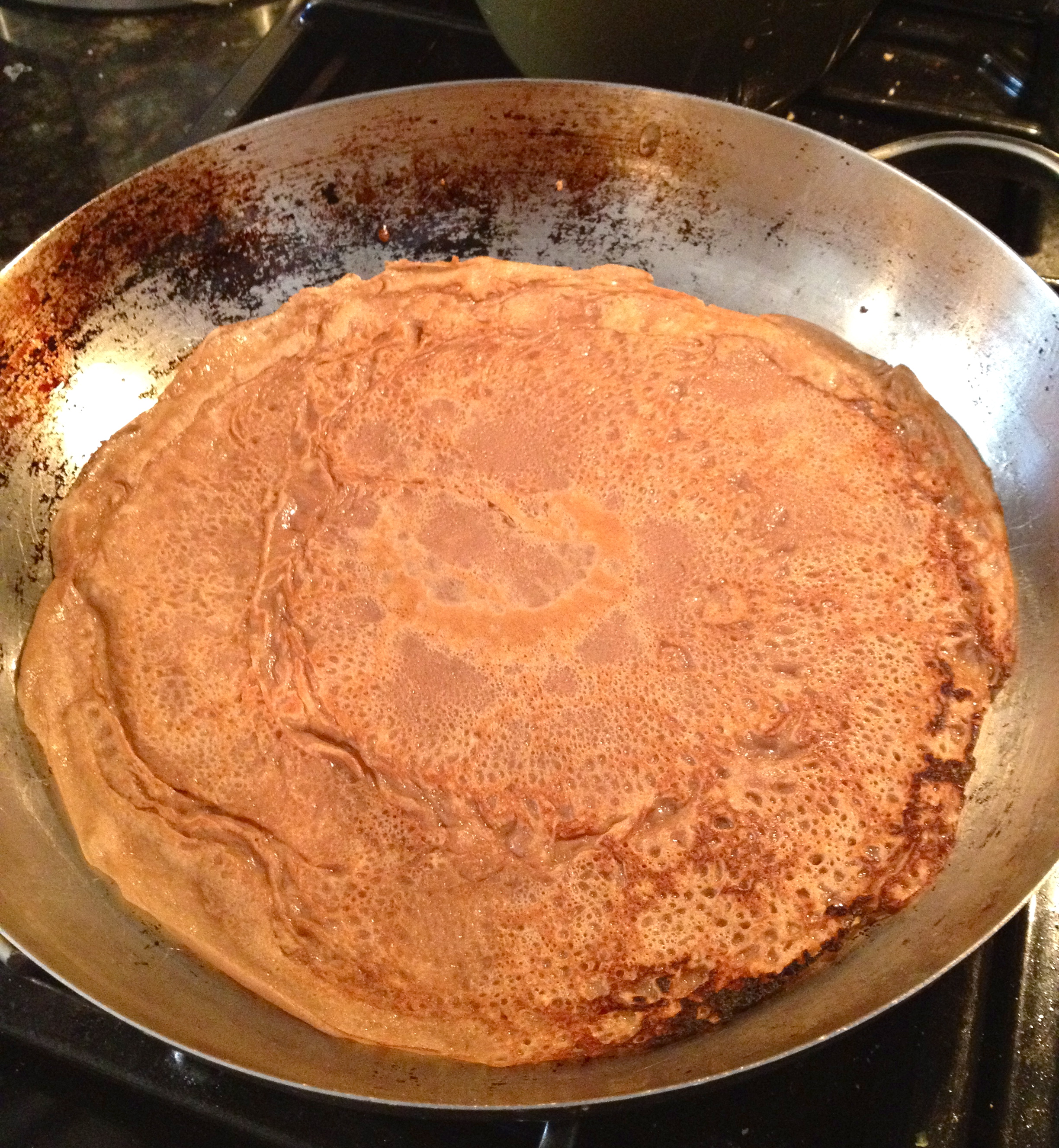 The French say to give the reject first crepe to the dog. Since these have chocolate in them, I figured Penny’s little tummy wouldn’t appreciate it, so I ate the ugly one, because my tummy does appreciate it. Regardless, the next few should work out better.