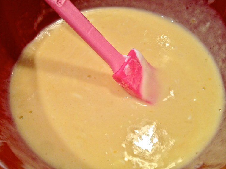 Remove shell from heat and set aside to cool slightly while you prepare the custard. Whisk together eggs and sugar. Then add vanilla and yogurt and stir until smooth.
