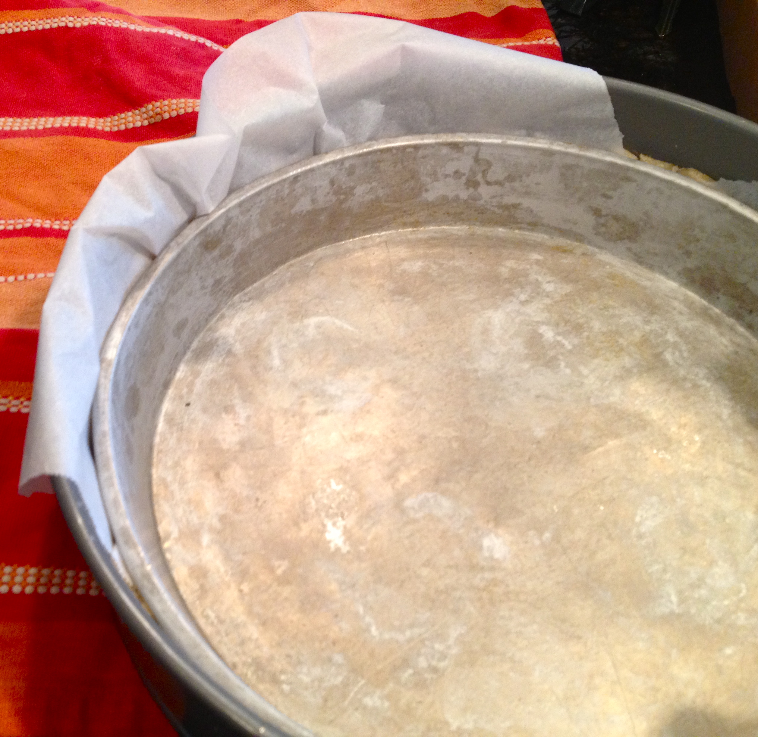 Preheat oven to 350 F. Take the tart shell out of the fridge and carefully lay a sheet of parchment paper over the dough. Fill the parchment-lined shell with dried beans, or fit another smaller pan into the shell. This will help it keep its shape while it bakes.