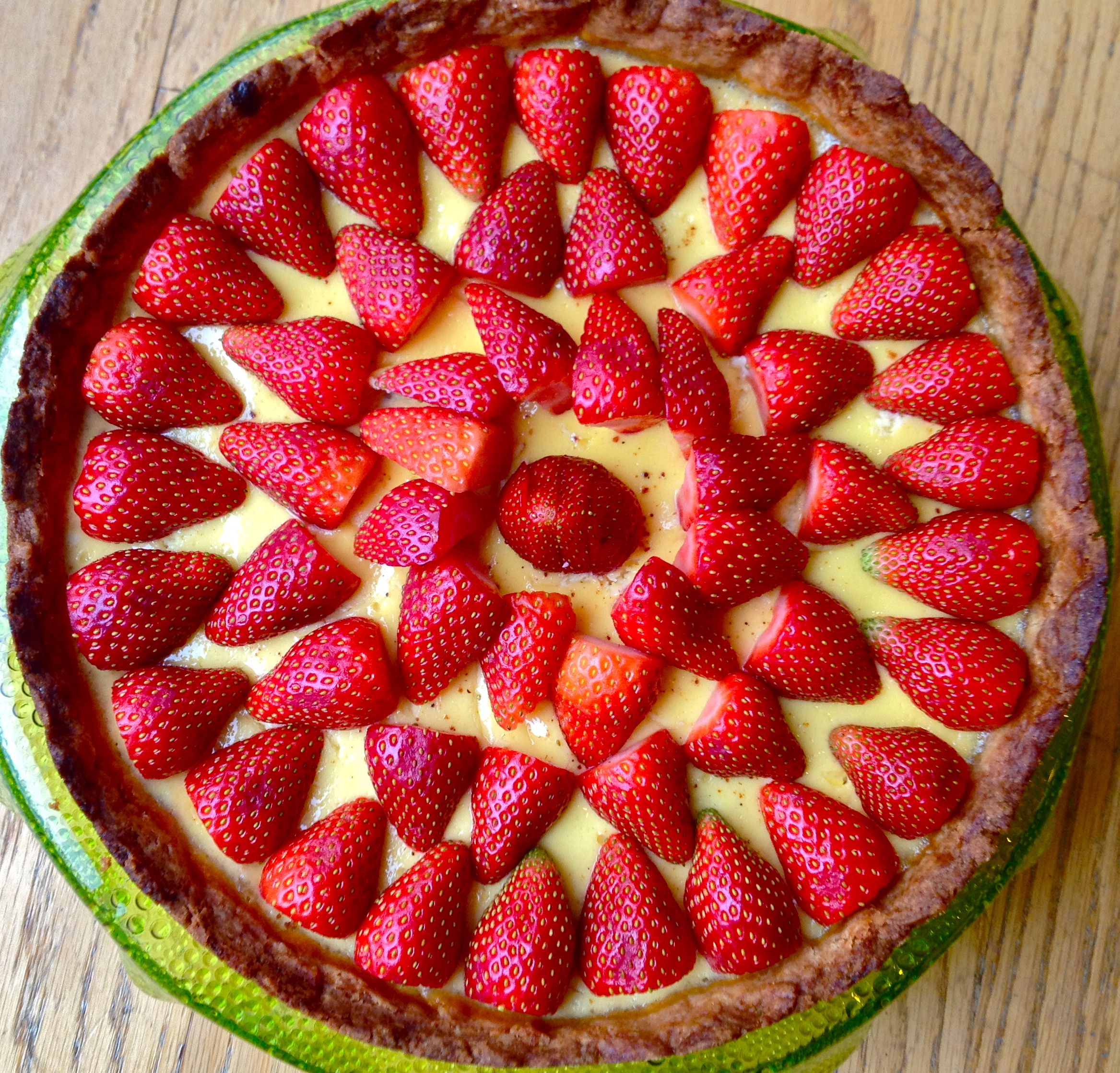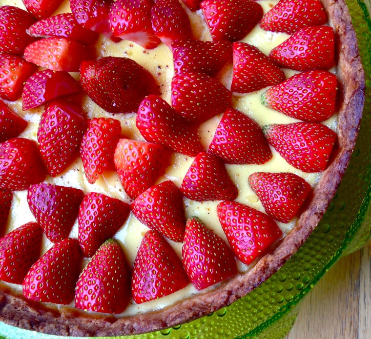When the tart is completely cooled, arrange the strawberry slices on top of the custard. Top with a squeeze of lemon juice and enjoy! Happy birthday to me.