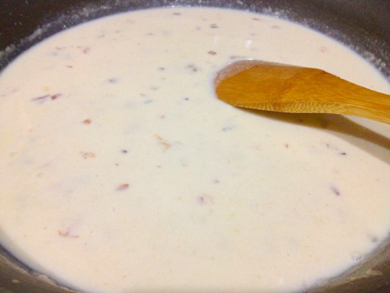 3 cups milk (approximately – you’re just going for the right sauce consistency, so eyeball it a bit)