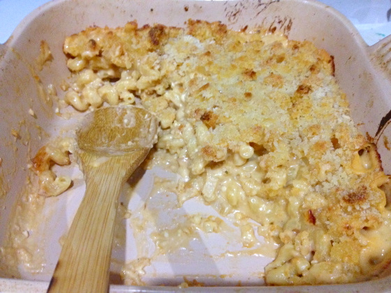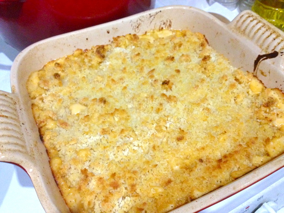 But not every experience needs to be new and unknown; sometimes safe and comfortable is just what the doctor ordered. And without any of my own family nearby, college-me found it especially thrilling to get to spend a weekend at the homes of some of my friends. It was so much fun to hang out with their families, pet their dogs, and see what it was like in the towns where they grew up. Visiting my beloved roommate Maura’s family was always a lot of fun for many reasons, not the least of which was the amazing FOOD! Maura’s mom and dad are awesome cooks and never failed to whip up something absolutely delicious whenever I came to visit; I have droolingly fond memories of her mom Gail’s key lime pie, and her mac ‘n’ cheese was always out of this world. I was overcome with a craving for it this past weekend, and they were nice enough to share the recipe with me. And, no surprise, it was the best mac ‘n’ cheese I’ve ever home-made myself. Check it out – this is the amazing Gail’s Baked Mac ‘n’ Cheese!